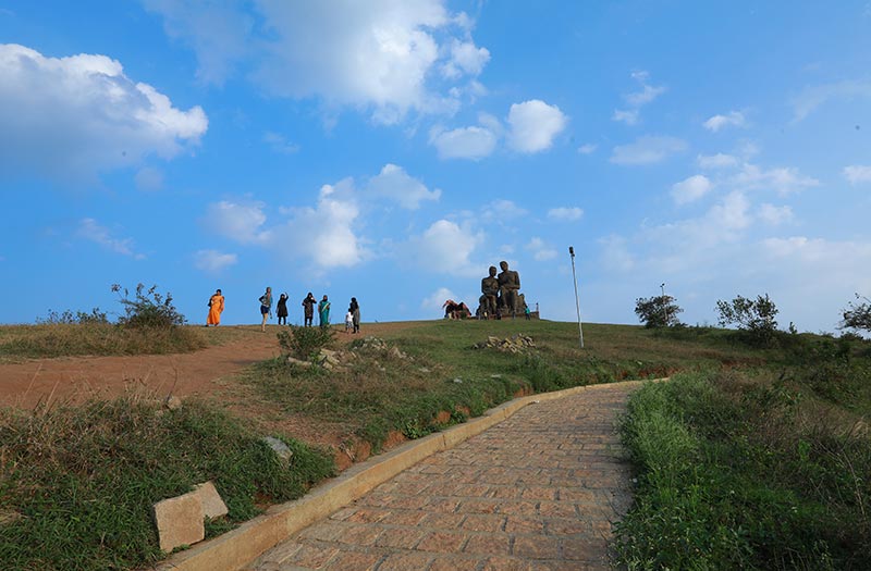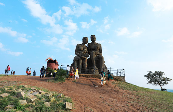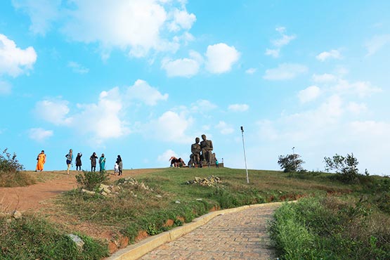 Ramakalmedu is a historic site with a Monument to Kuravan and Kurathi – a large statue that depicts the Sangam Period and Sangam landscape of Kerala and Tamil Nadu. The monument provides a panoramic view of Tamil Nadu villages and towns, including Cumbum, Theni, Kombe, Thevaram, Uthamapalayam, Bodinaykannor and Vaiga. Rolling green hills and the fresh mountain air make Ramakalmedu an enchanting retreat. The view is striking at dusk when all these towns are lighted.